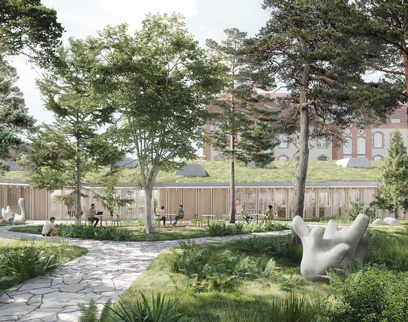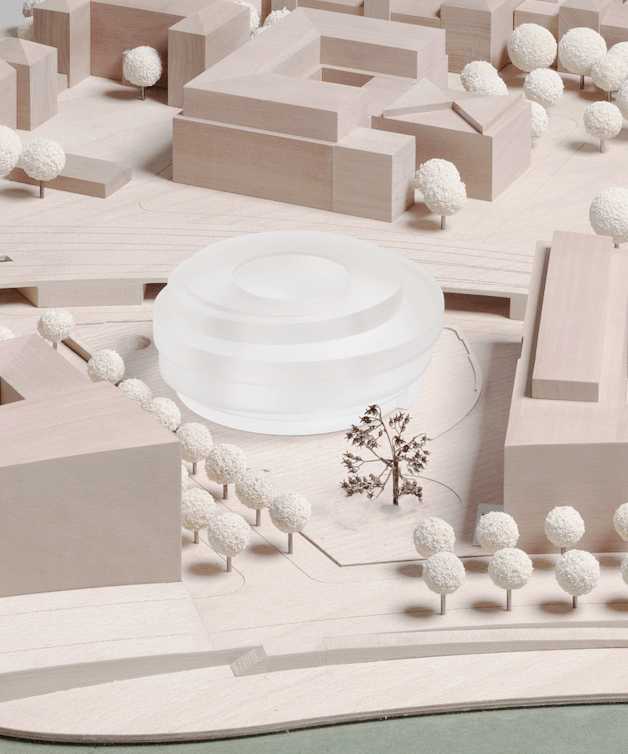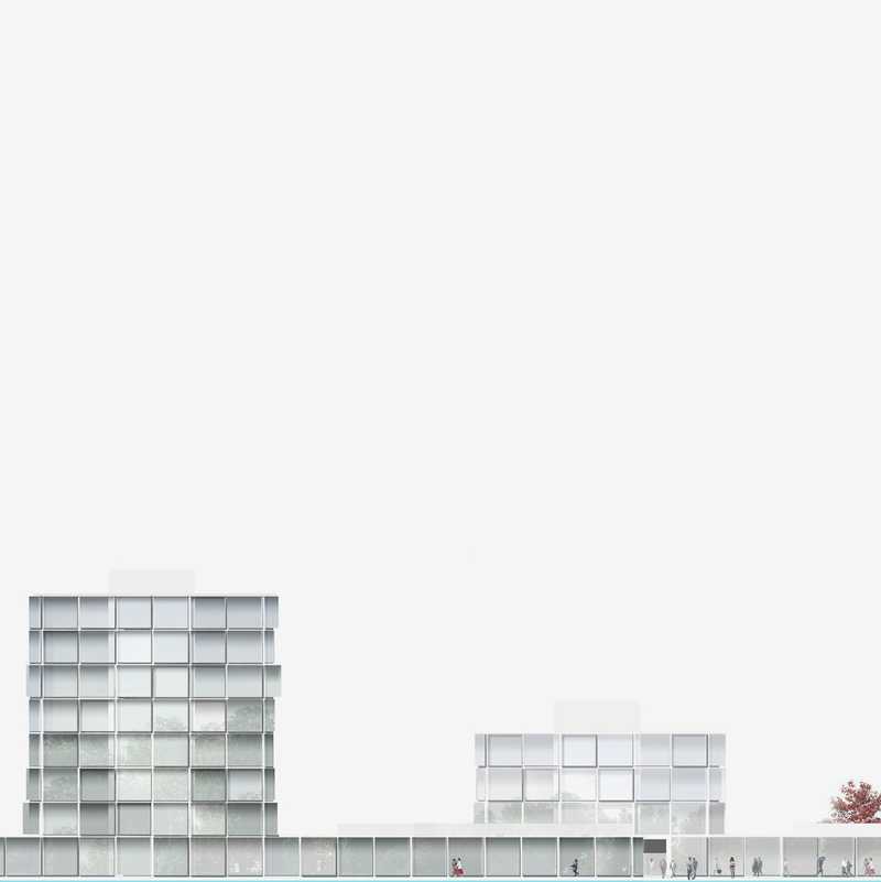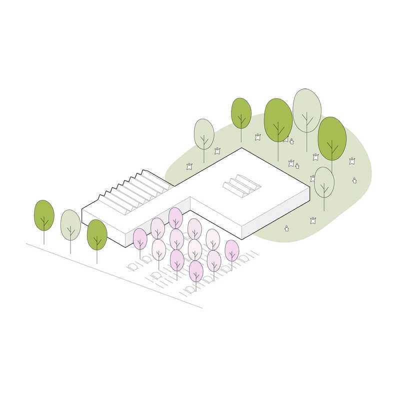 1. Preis, Forum für den Campus des Julius-Kühn Instituts am Standort Berlin-Dahlem. Ein eigenständiger Solitär, ein leichter Pavillon inmitten einer grünen Insel als Treffpunkt für Austausch und Kommunikation, gleichzeitig als Ort des Lernens und Bewahrens. Der Neubau als bauliche Fortschreibung des Bestands legt sich ganz selbstverständlich auf die bestehenden Außenwände und Bodenplatte des Untergeschosses. Ein gemeinsames Dach verbindet Neues und Altes symbiotisch zu einer Einheit. Die Verschiebung der Volumen schafft durch die resultierende Auskragung des Daches einen zwischen Innen- und Außenraum, zwischen Landschaft und Architektur, Kultur und Natur.
