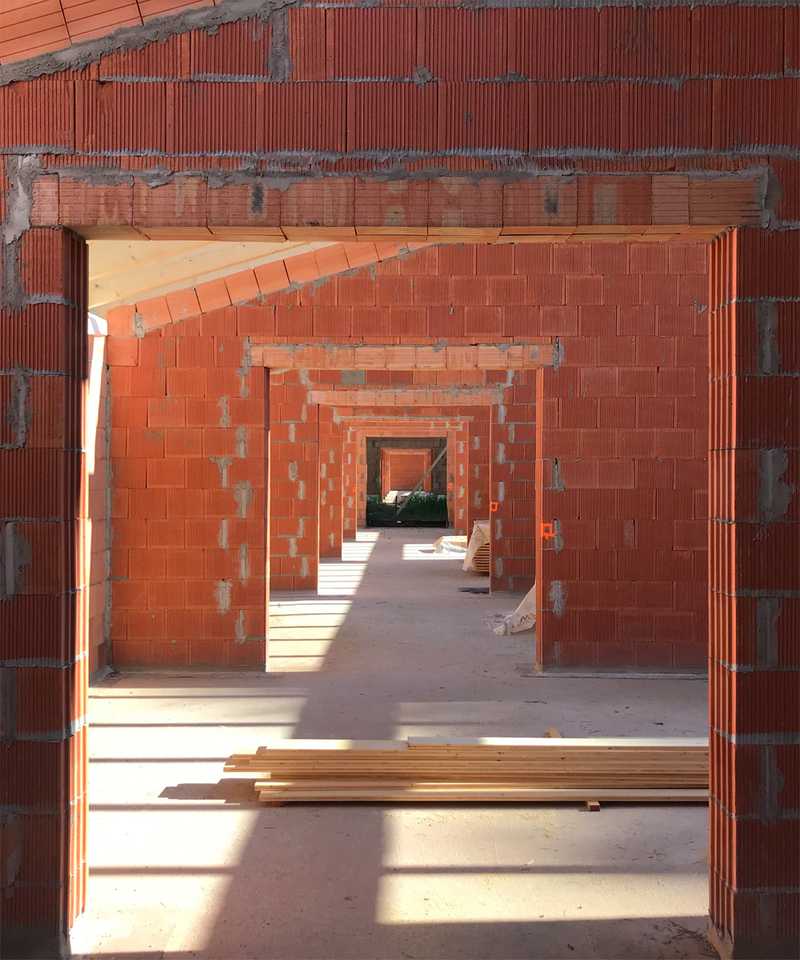 Richtfest in Schönwalde-Glien. Unser Kindergarten nähert sich schrittweise der Fertigstellung. Die räumliche Struktur aus ineinanderfließenden Räumen lässt sich schon jetzt erkennen.