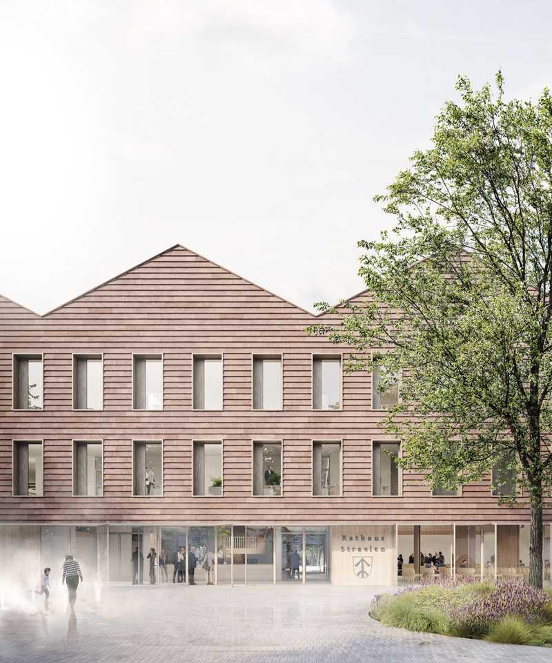 Das neue Rathaus ist ein selbstbewusstes Haus, dessen bauliche Anmutung an die gartenindustrielle Geschichte Straelens erinnern kann. Im Untergeschoss befinden sich Fundamente des alten Hauses - ein nachhaltiger Umgang mit dem Altbau, den das Preisgericht anerkennt.