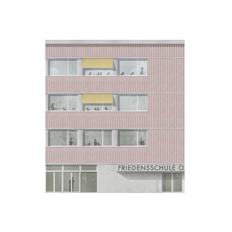 3. Preis, im Realisierungswettbewerb am Güterbahnhof Offenbach am Main, das sagt die Jury: „Das architektonische Bild des Hauses mit großer Transparenz und großformatigen Öffnungen ist als hervorgehobener und somit öffentlicher Gebäudetyp lesbar. Der dem Haus vorgelagerte Vorplatz ist angenehm großmaßstäblich und schafft mit der Cafeteria ein schönes Belebungsangebot, ggf. auch außerhalb der Schulöffnungszeiten.“