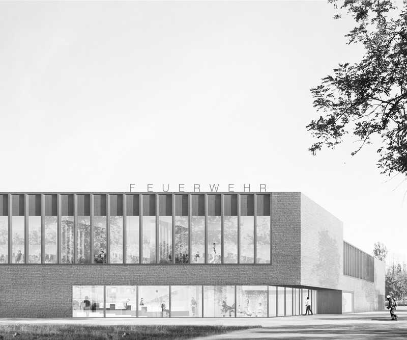 1. Preis in Dallgow-Döberitz. Ein liegender Solitär inmitten vertikaler Kiefern auf dem neu geschaffenen Rathausplatz nimmt Verwaltung und Bürgersaal auf. Wir freuen uns auf die spannende Aufgabe.