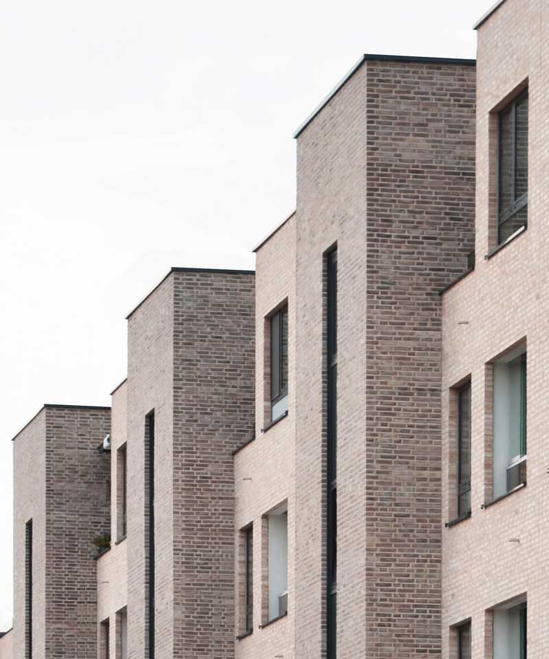 Petrihof - Neubau von 122 Genossenschaftswohnungen in Rostock als Interpretation der historischen Giebelbauten der Hansestadt. Ausgehend von der vorgegebenen Blockstruktur werden den Himmelsrichtungen entsprechend, differenzierte Erschließungsformen ausgebildet.