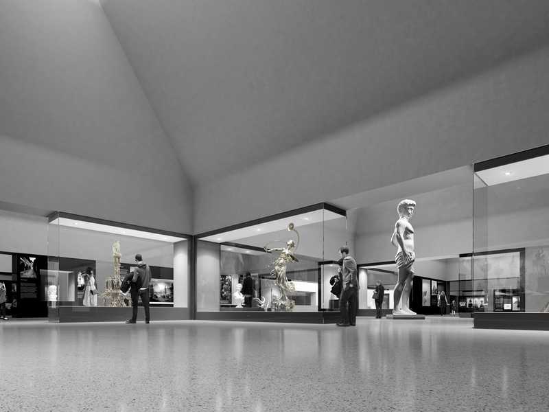 Wettbewerb Museum der Bayerischen Geschichte in Regensburg - Die Ausstellungsebene ist geprägt durch die bewegte Dachlandschaft um spannende Raumfolgen, sowie eine hohe Flexibilität innerhalb der Ausstellungsgestaltung zu bilden. Entwurflich nehmen die Dächer historisch bayerische Traditionen der Dachsilhouetten auf.