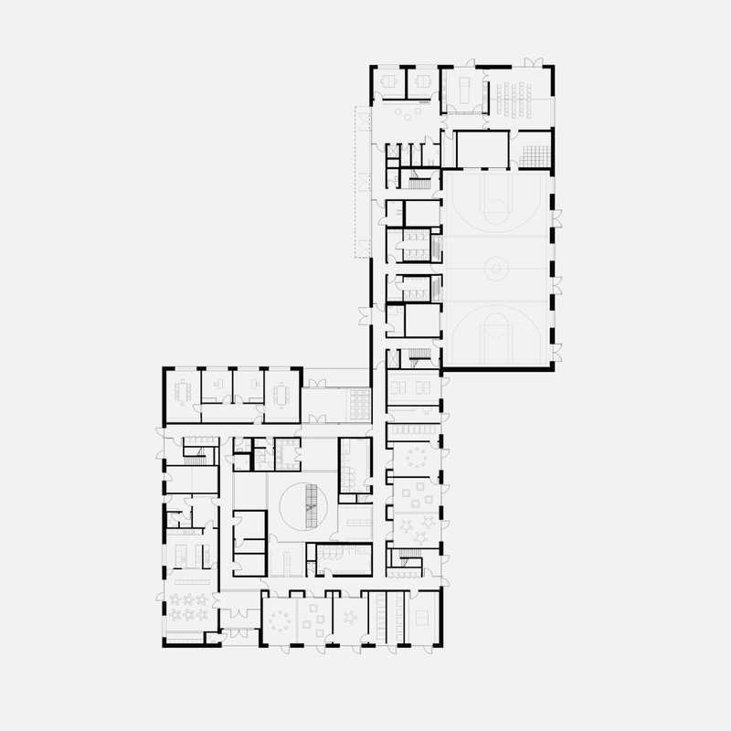 1. Preis in Berlin-Zehlendorf. Das präzise in das Baufeld eingepasste Volumen orientiert sich an den Fluchten der Bestandsschule und schafft eine neue räumliche Ordnung des Schulgeländes. Die Ausbildung der Fassade unterstützt den Pavilloncharakter der Sporthalle. In unterschiedlichen Farbtönen eloxierte Aluminiumprofile geben dem Baukörper eine freundlich einladende Atmosphäre.